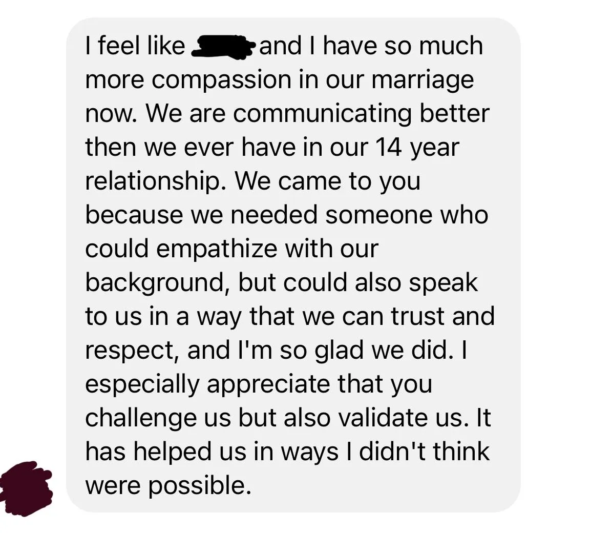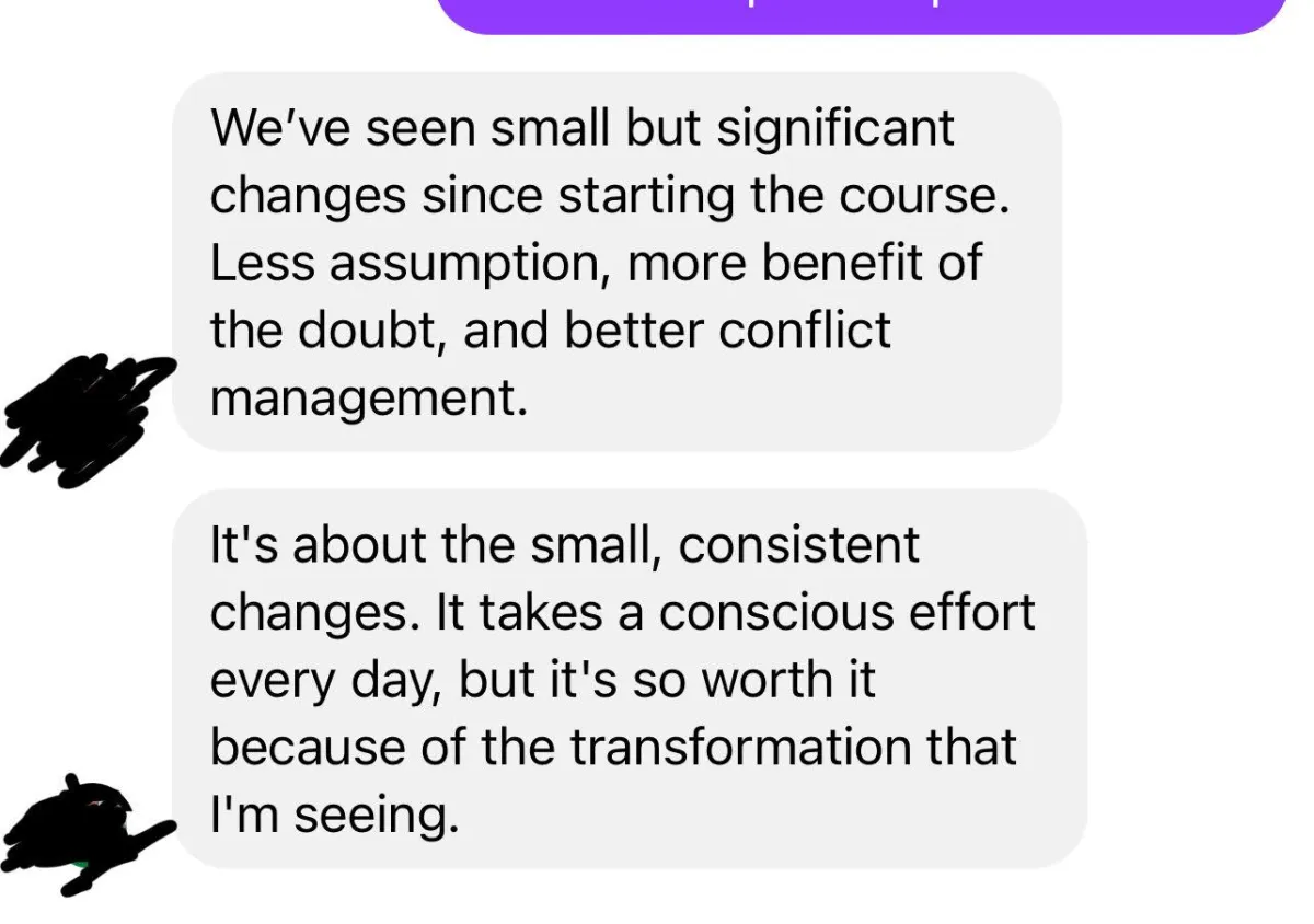My approach goes beyond improving communication; it aims to fundamentally shift the way you feel around each other, fostering deeper connection and lasting harmony.