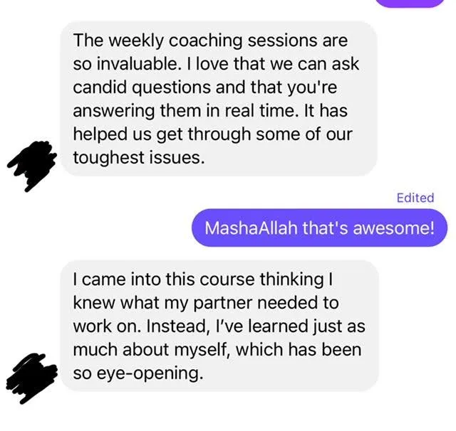 That’s why I created the Muslim Marriage Reset - a 12-week program designed to help you build your dream marriage filled with love, compassion, respect, understanding and a deep level of trust…